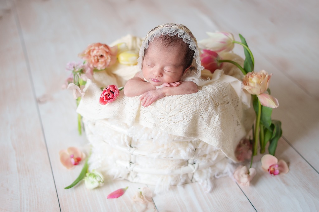 春を感じさせるチューリップを使用したニューボーンフォト👶📷